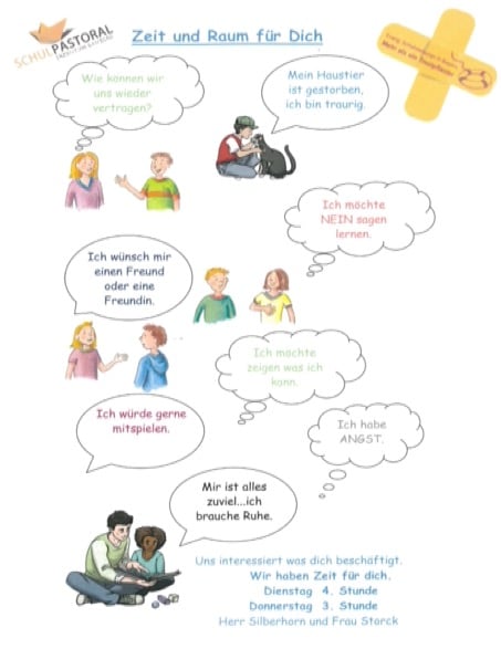Unsere Schüler und Schülerinnen haben die Möglichkeit, sich mit allem was ihnen auf der Seele liegt an die Schulseelsorger zu wenden.